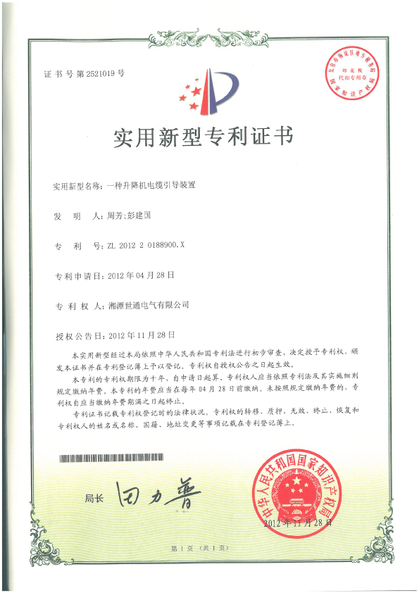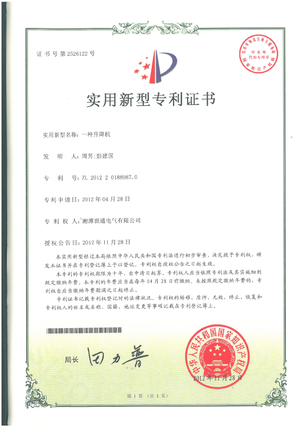 ◆ 本公司塔筒專用升降機獲得多項國家專利