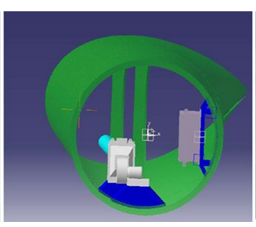 氣流方向如紅色、黃色箭頭所指。加熱時(shí)葉片腔內(nèi)氣流通過(guò)加熱后沿紅色箭頭所指方向通過(guò)玻璃鋼通風(fēng)管吹向葉尖位置,氣流從葉尖通過(guò)與腹板形成的風(fēng)道形成完整的空氣循環(huán)流動(dòng)路線(xiàn),腔內(nèi)空氣的循環(huán)加熱可以有效加熱葉片結(jié)冰區(qū)域(從12米到45米)并兼顧葉片后緣和葉根段,達(dá)到葉片防、除冰效果。