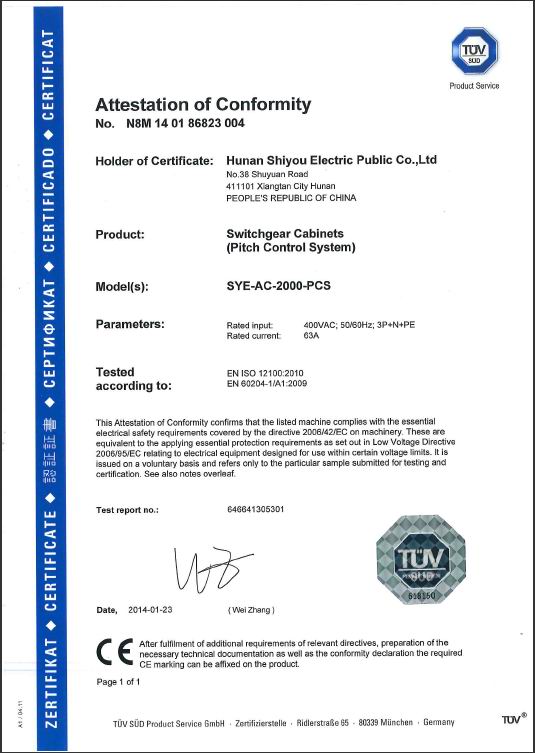 經(jīng)世界權威認證機構德國TUV的嚴格評審,世優(yōu)電氣風力發(fā)電機組電控系統(tǒng)全系列產(chǎn)品榮獲歐盟CE認證。