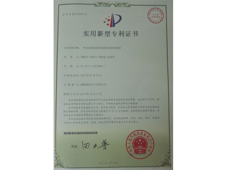 交流變槳距控制系統(tǒng)收槳裝置專(zhuān)利