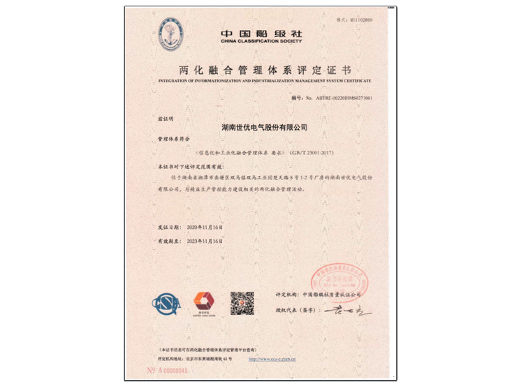 兩化融合管理體系評(píng)定證書(shū)